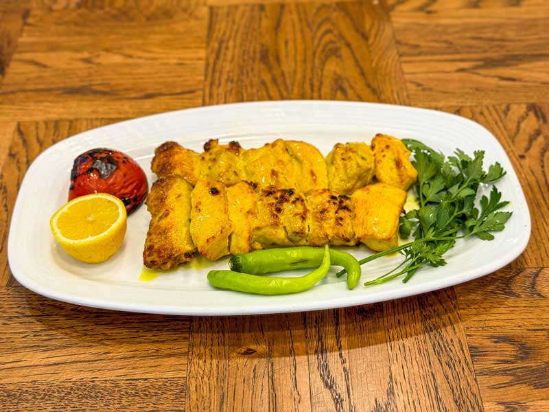 2 Grill Skewers With Salad- Cucumber Yoghurt Sauce And Bread. With your choice of Rice or French Fries